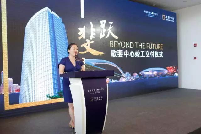 儀式上,歌斐資產(chǎn)地產(chǎn)基金合伙人譚文虹首先上臺發(fā)表致辭,她激動地告訴來賓:“今天我們特別激動。從一年半前我們收購這棟樓開始到現(xiàn)在,歌斐中心就像我們自己的孩子一樣,不斷的成長。我們每次路過都會自豪地說,這是我們基金的樓!”隨后她還對歌斐中心的硬件和軟件實力作了詳細介紹。