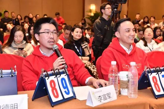 評委打分(左一為歌斐資產(chǎn)創(chuàng)始合伙人兼CEO殷哲,右一為歌斐資產(chǎn)管理合伙人閻小慶):