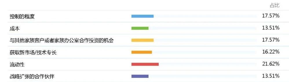 本次調(diào)查顯示CIO們最感興趣的前三大直投領(lǐng)域是科技、金融、醫(yī)療保健;直接投資第一強(qiáng)調(diào)流動(dòng)性,第二以獲取市場(chǎng)新技術(shù)為目的;59%的家族辦公室也在參與家族企業(yè)的投融資行為。