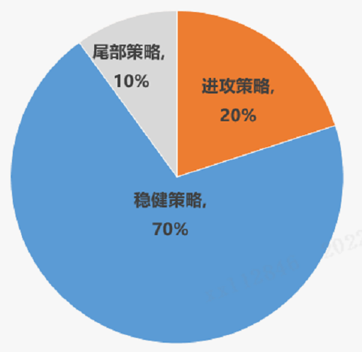 具體分配上,約70%的資產(chǎn)配置穩(wěn)健策略產(chǎn)品,即市場(chǎng)中性和債券等;然后約20%配置股票多頭、指增等進(jìn)攻策略產(chǎn)品;剩下的配置CTA、股票多空等,力爭(zhēng)創(chuàng)造相對(duì)較低的波動(dòng)及相對(duì)不俗的長(zhǎng)期收益,對(duì)抗通脹,同時(shí)還不需要投資者自己花費(fèi)大量心思、受困于額度等。(注:以上方案為中樞配置方案,實(shí)際運(yùn)作中會(huì)根據(jù)市場(chǎng)情況做動(dòng)態(tài)調(diào)整。)