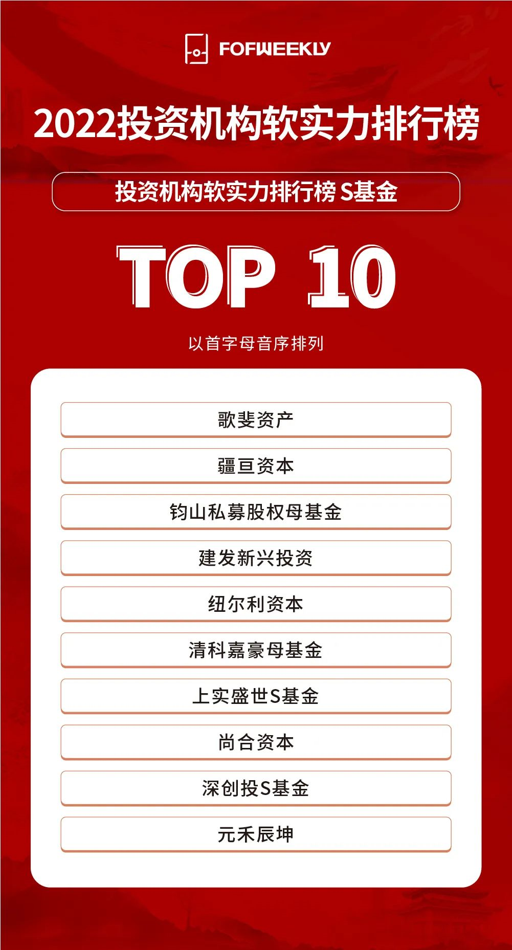 近日,母基金周刊「2022投資機(jī)構(gòu)軟實(shí)力排行榜」正式發(fā)布。歌斐資產(chǎn)憑借自身出色的表現(xiàn),榮獲“投資機(jī)構(gòu)軟實(shí)力排行榜 S基金TOP10”。