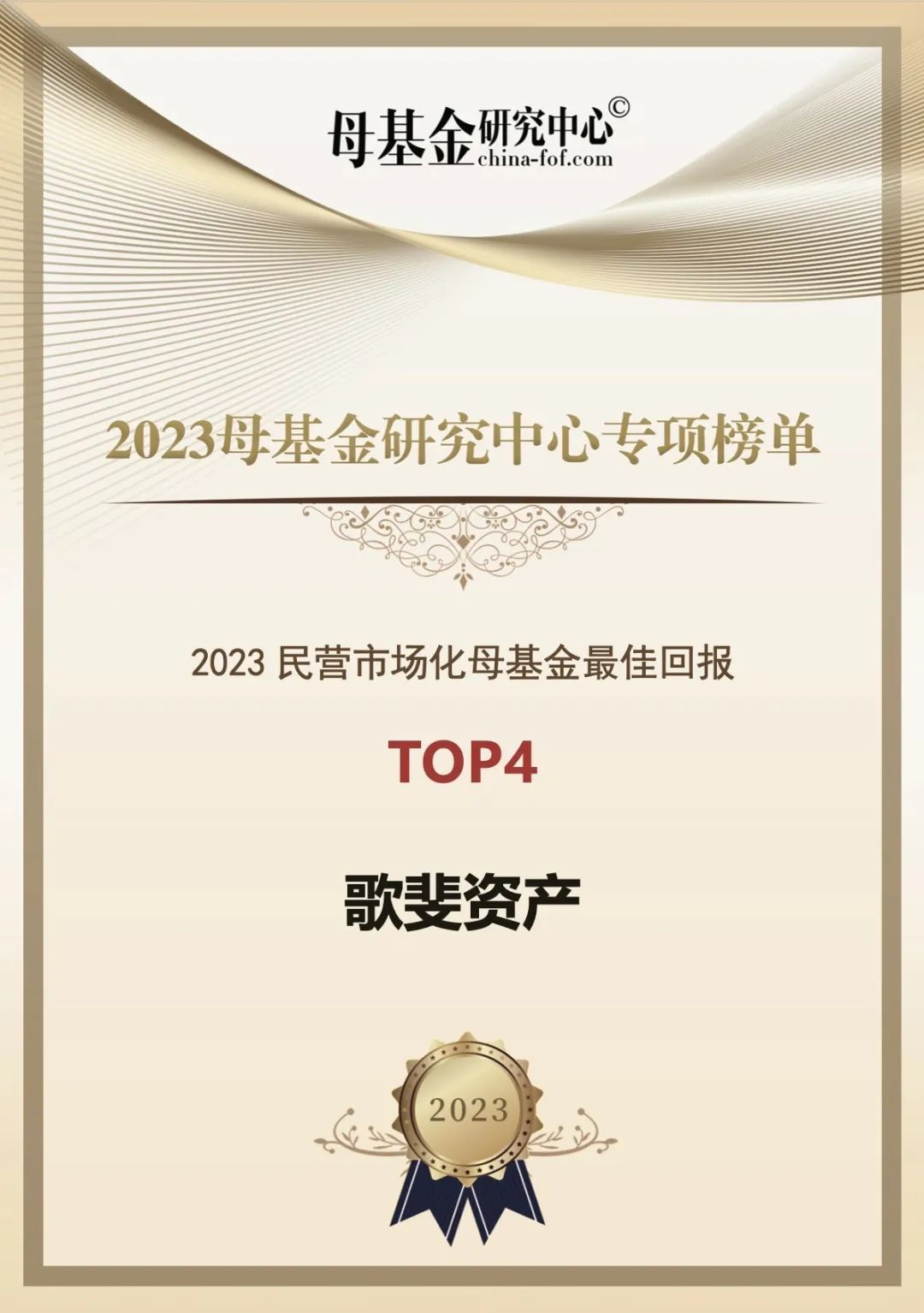歌斐資產(chǎn)憑借出色的表現(xiàn)獲得“2023民營市場化母基金最佳回報TOP4”。