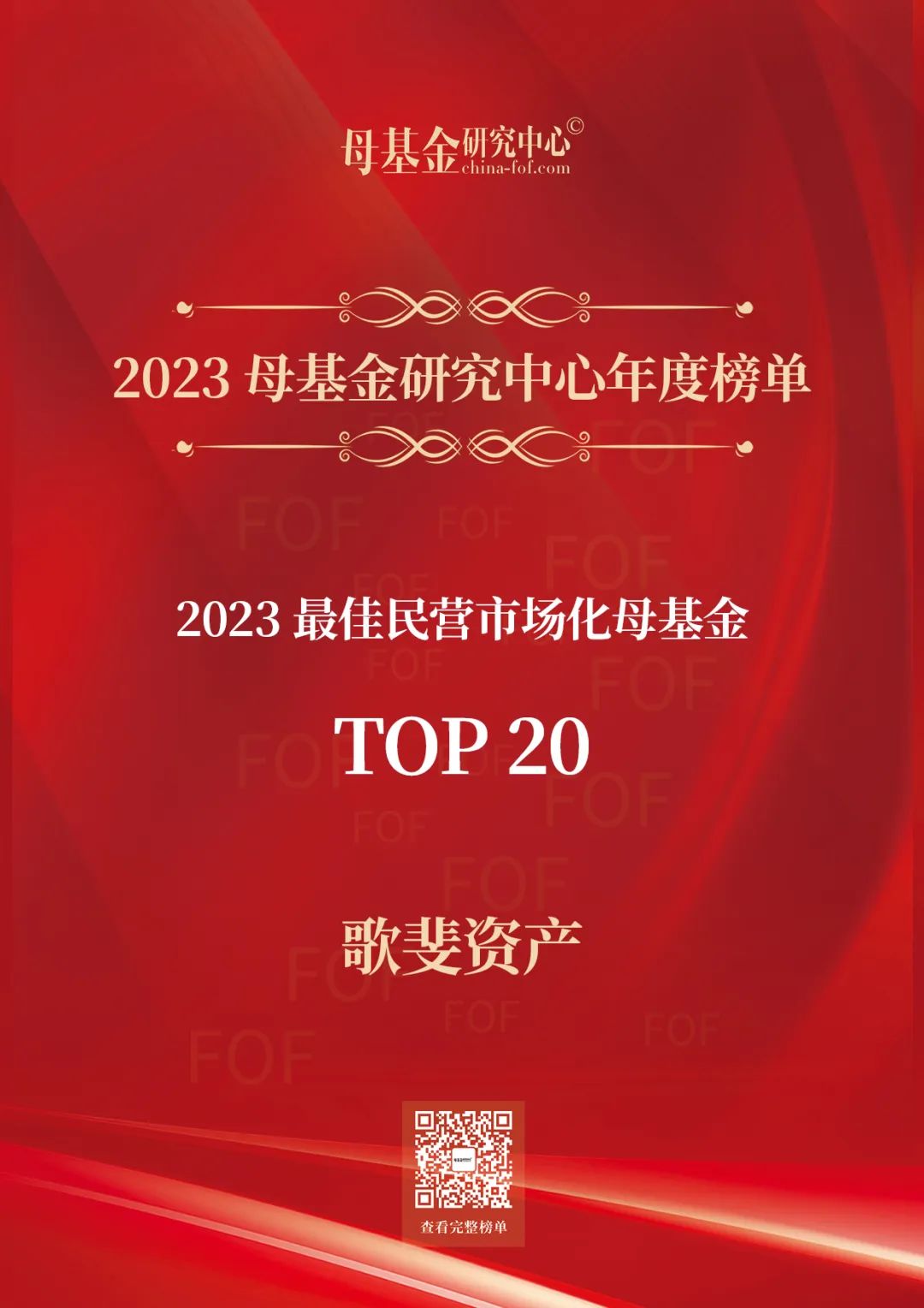 歌斐資產(chǎn)憑借出色表現(xiàn)獲得“2023最佳民營市場化母基金TOP20”。